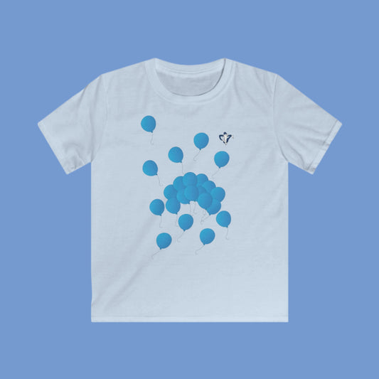 Tee-shirt enfant Ballons bleus Personnalisation FACE et MANCHE