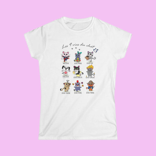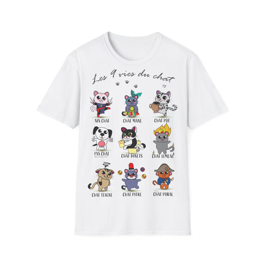 T-Shirt adulte mixte 9 vies Personnalisation FACE et MANCHE