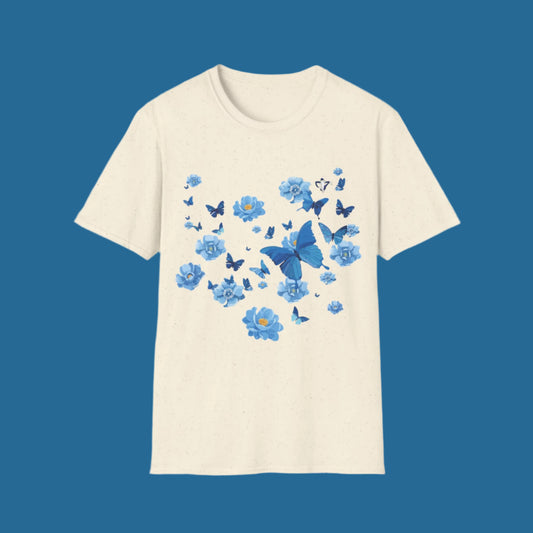 T-Shirt adulte mixte Fleurs et papillons bleus Personnalisation FACE